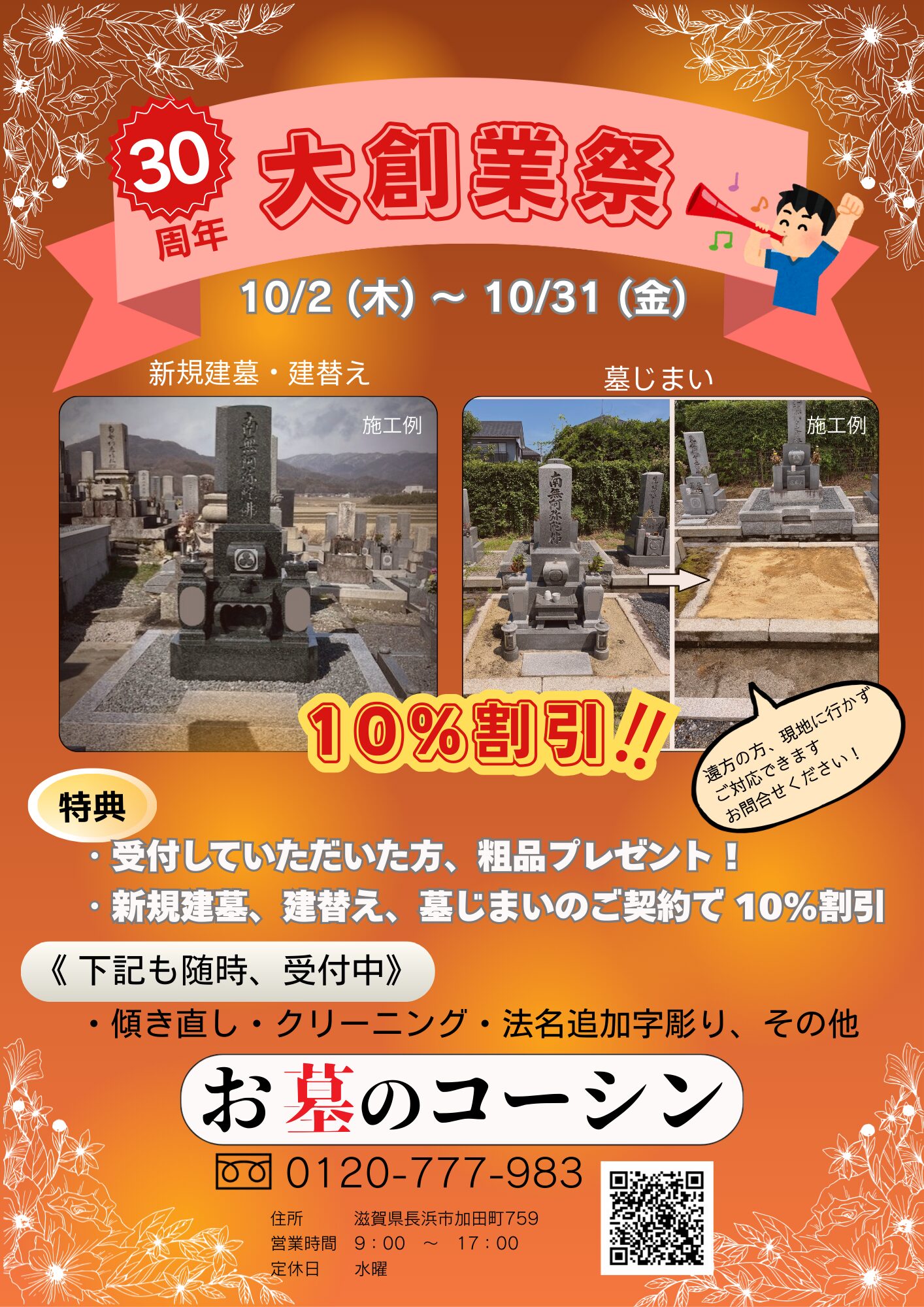 ブログ 新着記事 施工事例 お知らせ スタッフブログ お知らせ 創業30周年!! 大創業祭 2025.09.18 お知らせ お墓掃除・お墓参り代行を始めました! 2025.04.30 お知らせ 春の特別大売り出し!! 2025.04.26 お知らせ 墓じまいとは?手続きと流れを詳しく解説! 2025.04.13 お知らせ 親が亡くなったらお墓を建てるべき? 2025.04.07 お知らせ お墓の悩み、解決します! 2025.02.10 お知らせ Webサイト公開 2024.08.26