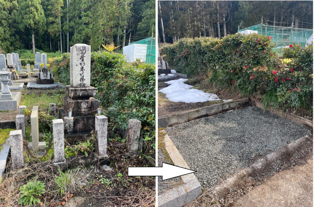 大阪府枚方市在住の施主様より、ホームページを見ていただきご連絡をいただきました。長浜市にあるご実家のお墓のお参り・管理が出来ず、元気なうちに「墓じまい」したいと考えているとの事でした。またご高齢で移動が大変な事、移動費用の負担なども心配とのお話しいただき、「オンラインで墓じまい」をご説明させていただきました。